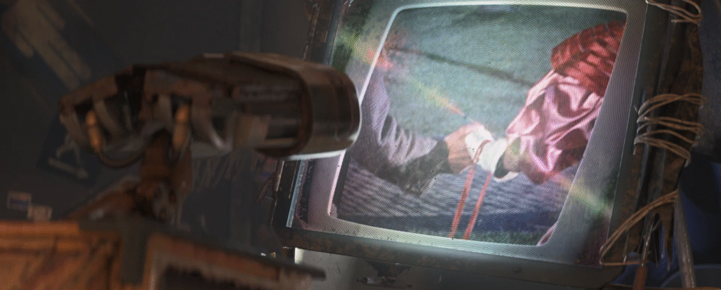 در ادامه، هنگامی که با والای همراه میشویم و او وارد مکان خودش میشود، وی را در حال تماشای زوجی در تلویزیون کوچکش میبینیم. تمرکز والای بیش از این دو نفر، معطوف به دستانشان است: ایندو، دست در دست یکدیگر پیوندی عاطفی و احساسی برقرار میکنند؛ چیزی که در دنیای پیرامون والای کاملاً گم است. والای با اینکه ربات است، اما چنین خلأیی را حس میکند. گویی عاقبت تکنولوژی و جهان مبتنی بر آن، این است که عاطفه و احساس بمیرد و ریشهاش بهگونهای خشک شود که حتی از طاقت یک ربات به عنوان سمبل تکنولوژی خارج باشد! همین بخش از اثر نکتۀ مهمی را منتقل میکند. مسلم است که یک ربات بویی از حس و احساسات نبرده و نمیتواند به آن نزدیک شود. سازندگان اما پیامی دیگر را منتقل میکنند: جهانی را میسازند که در آن، یک ربات از فرط تنهایی و تهیبودگی روی به عاطفه و احساس آورده و خواهان رابطه با دیگریای است که به او مجال تحملکردن بدهد. در واقع گویی ادامۀ روند تکنولوژی چونان توانفرسا خواهد بود که حتی طاقت رباتها را طاق خواهد کرد!