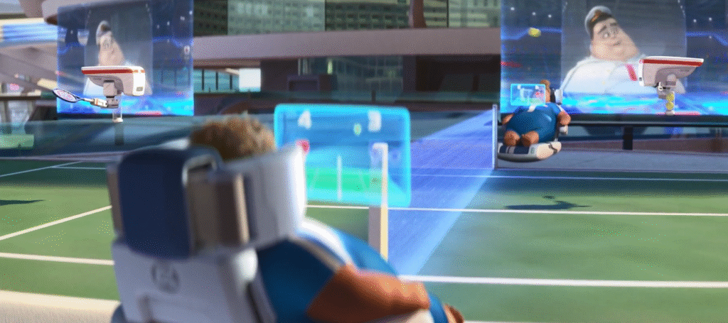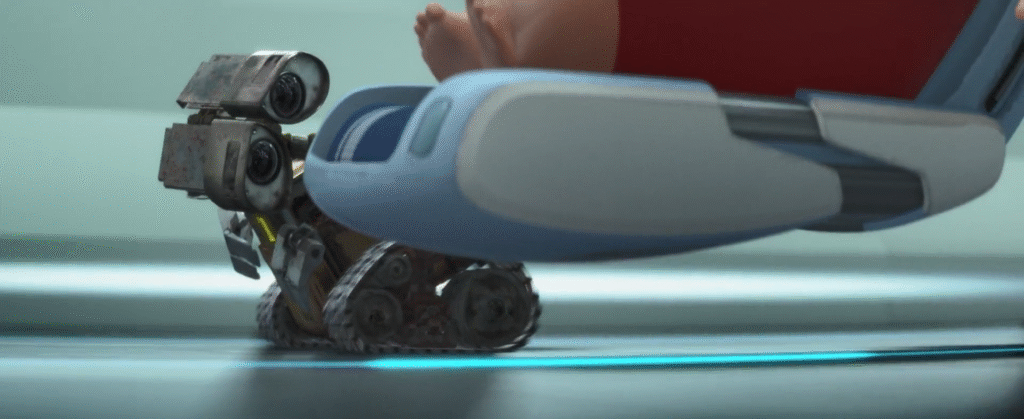 وقتی میگوییم «والای» انیمیشن دقیق و پرمعنایی است، سکانس آشنایی والای با جهان جدید و نظارۀ انسانهای جدید میتواند مثال خوبی برای آن باشد. به محض ورود والای به این مکان، شاهد نقش فعال رباتها در پیشبرد نوع دیگری از زیست هستیم. گویی رباتها همهکارهاند. دائماً در تحرک و فعالیتاند. اما در سوی دیگر، انسانها نشسته بر صندلیای که خودش حرکت میکند، کوچکترین تحرکی ندارند. دقت کنیم که وقتی والای برای اولینبار انسانی را میبیند، تعجب میکند که او چگونه حرکت میکند. گویی باورش نمیشود که انسان اینگونه بر یک صندلی لم بدهد و صندلی، خودش مسیر را طی کند. از آنجایی که والای خودش چرخ دارد، با نگاهی از سر تعجب و کنجکاوی دقت میکند که آیا صندلی آن انسان هم دارای چرخ است یا نه.