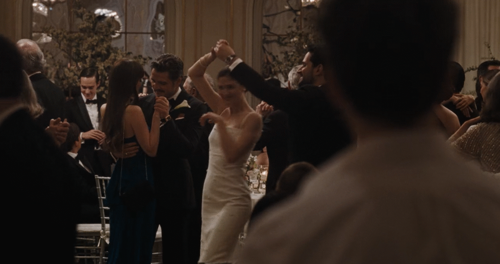 خالی از لطف است اگر از ادامۀ این صحنه چشمپوشی کنیم؛ جان زمانی که برای برداشتن وسایل شخصی به تالار میآید، لحظهای از رقص لوسی و هری را میبیند. حال، این بار دوربین پس از برملا کردن حس درونی کاراکتر، پشت وی قرار میگیرد و با محو کردن جان و شفافیت بخشیدن به مرکز صحنه (رقص لوسی و هری)، نقطه ضعف و آرزوی کاراکتر را به تصویر میکشد.