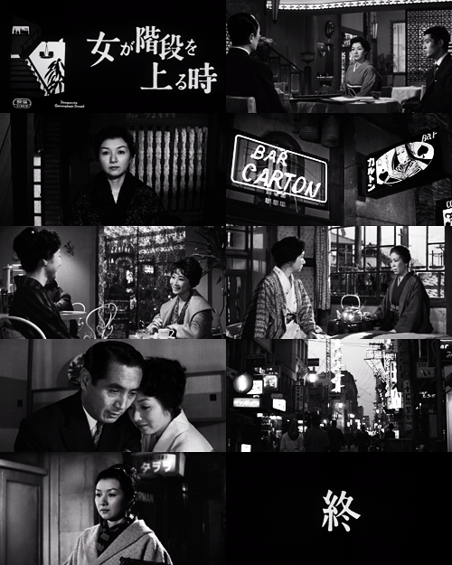فیلم ابدا رونویسی از هیچکدام از آثار میزوگوچی نیست – حتی از خیابان شرم نیز تقلید نمیکند. ناروسه آن جهان را تقلید نمیکند بلکه جهان خودرا برپا میکند. فیلم ناروسه در تقلید و یا تضاد خیابان شرم نیست، ادامه آن است. ادامه جهان و جامعه ژاپن (از سال ۵۶ تا ۶۰) است که با ظهور مظاهر و فرهنگ غربی چگونه فحشا میتواند به معاشرتی بودن؛ فاحشهخانه به کلوپ یا بار؛ قوادان به متصدیان و فاسقان به متمولین رده بالای دولتی تبدیل شوند که حال وجود آنها در این مکان گویی توجیه غربی از سطح باز روابط میان زن و مرد دارد. اگر میزوگوچی در بیان فقر و فلاکتی که فحشا را عامل میشود، مرثیهسرایی میکند؛ ناروسه در مقام هنرمند احساساتی بااین مساله برخورد نمیکند بلکه آنرا واقعبینانه مورد نظر قرار میدهد.کاریست که شده و وضعی است که کنون مردم ژاپن درگیرش هستند.